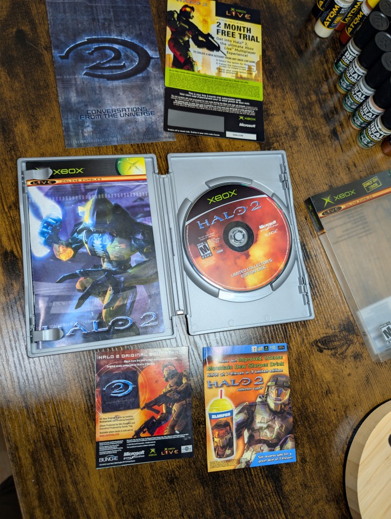Seeing the Limited Collector’s Edition of the game in its sleek metal case next to the standard release of the game on store shelves made the choice easy. It’s wild now seeing all the promotional things packaged inside. The Halo Mountain Dew Slurpee from 7-11 is particularly notable.