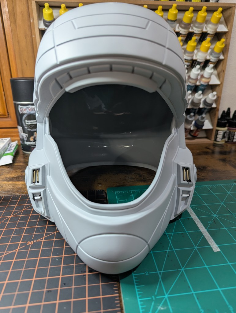 There were a couple of options available when I was ordering the helmet. I opted for Branfuhr Studios to trim out the resin visor section that is present in the raw cast as well as provide the initial coat of primer. This is how the helmet looked when it arrived. The cast was super clean and feels very sturdy. I also chose the blue-tinted visor which has a really nice reflective quality while providing decent visibility when wearing the helmet.